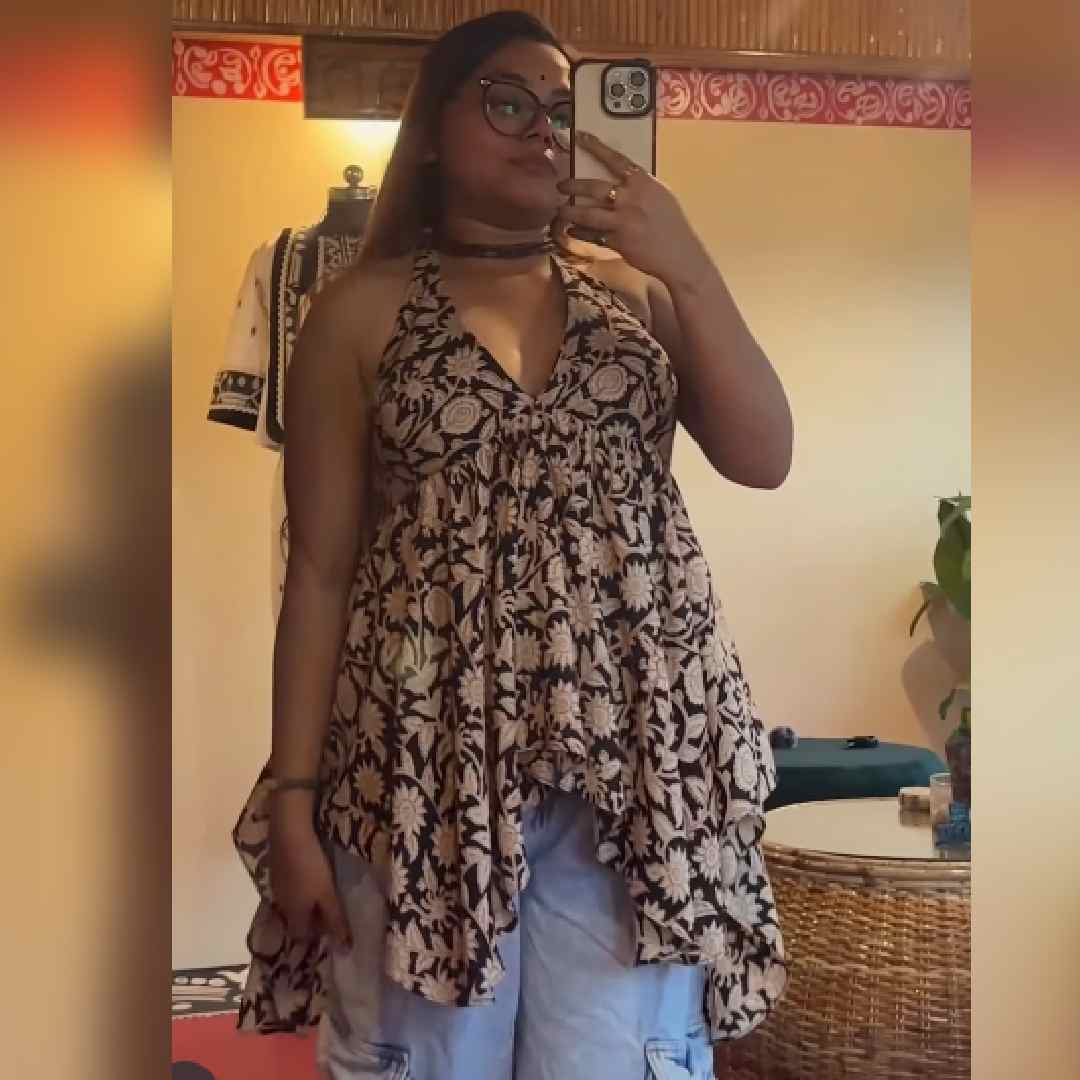For fusion vibes, opt for flared spaghetti tops, featuring ethnic motifs. Pair with baggy jeans, sneakers and even juttis. Tie a high pony and accessorise with a metallic choker or jhumkas. A simple wallet clutch will be a practical choice to bring the look together.