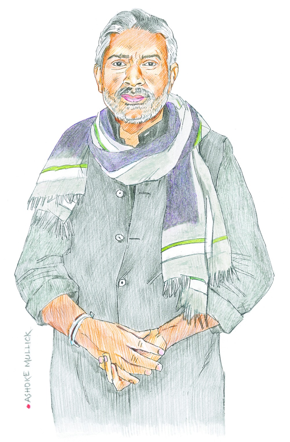 He sits in his office - wearing a grey sweater, teamed with a gamchha-like grey shawl that works like a dupatta, and a pair of blue jeans. The office in Mumbai is charmingly old-world - right from the two benches at the reception to the ancient fan. You have to remove your shoes before you step in for there is a little temple - with a Durga idol flanked by Ganesha and Hanuman - just near the entrance.