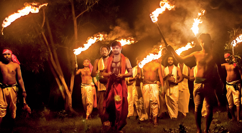 Scenic and performance designs are conceived keeping in mind the natural surroundings. Lights used at night are natural. Fire torches, clay lamps, candles and huge bonfires. "We want to show that a stage can be more than a conventional proscenium space," he adds.