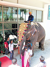 You can’t blame Athar. A grandly decked elephant stood outside the Aditi office instead of the usual security official. A flower-strewn red carpet had been laid out, a music band played the chenda — a traditional percussion instrument — and a puja was on in full swing.