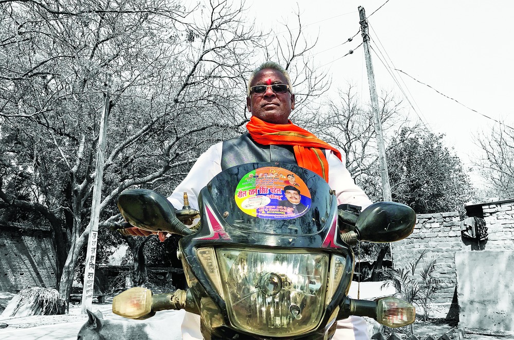 Narayan Patel, the pradhan of Jayapur, subscribes to the Apna Dal, a regional Kurmi formation allied to the BJP. He sets out each morning on his motorcycle, a one-man campaign party coughing dust in the countryside until it's night and there's nobody to canvass anymore. His energies are expended neither for the Apna Dal nor for the BJP. " Humko matlab hai Modiji se aur sirf Modiji se, aisa neta desh ko aajtak mila nahin, aur UP ko bhi Modiji chahiye." (I am concerned with Modi and him alone, the country hasn't ever had such a leader, and UP too needs Modi.)