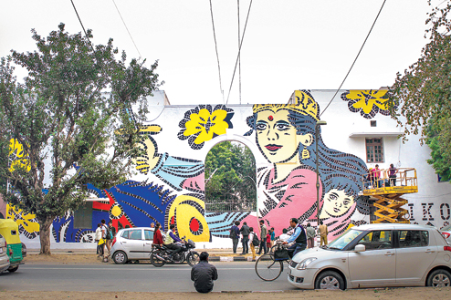 The campaign also seeks to introduce art to people who have no access to galleries. "We chose this wall because this building is a part of the lives of so many people - such as rickshaw pullers and vegetable sellers - who have not been exposed to art but who would be happy to see such a colourful image," Bahl adds.