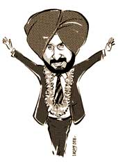 A cheery Sunday morning has melted into a weary afternoon, and there is still no sign of Navjot Singh Sidhu. The meeting's been rescheduled so many times that I begin to fear that he has, finally, run out steam and one liners. A sudoku, a crossword and a jumble puzzle later -- just when it looks as if Sunday may well stretch to a Monday -– the bell rings, loud and incessant. This, no doubt, is the new Member of Parliament from Amritsar . Who else would press the bell like that?