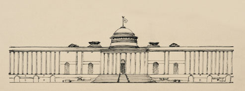 The studio was directly on the floor below. About 80 feet long, with a 30-feet-high ceiling, in the south wing of the Rashtrapati Bhavan.