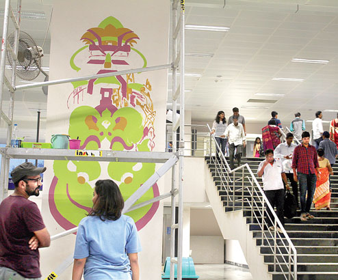 It all began with the Peenya metro station two years ago. The station walls, outer and inner, suddenly blossomed into expression. Murals, totems, illustrations...If you happen to be in Bangalore now, you will see visual narratives assuming shape on the walls of the Namma Metro (Kannada for "our metro"); the sixth to undergo such a transformation.
