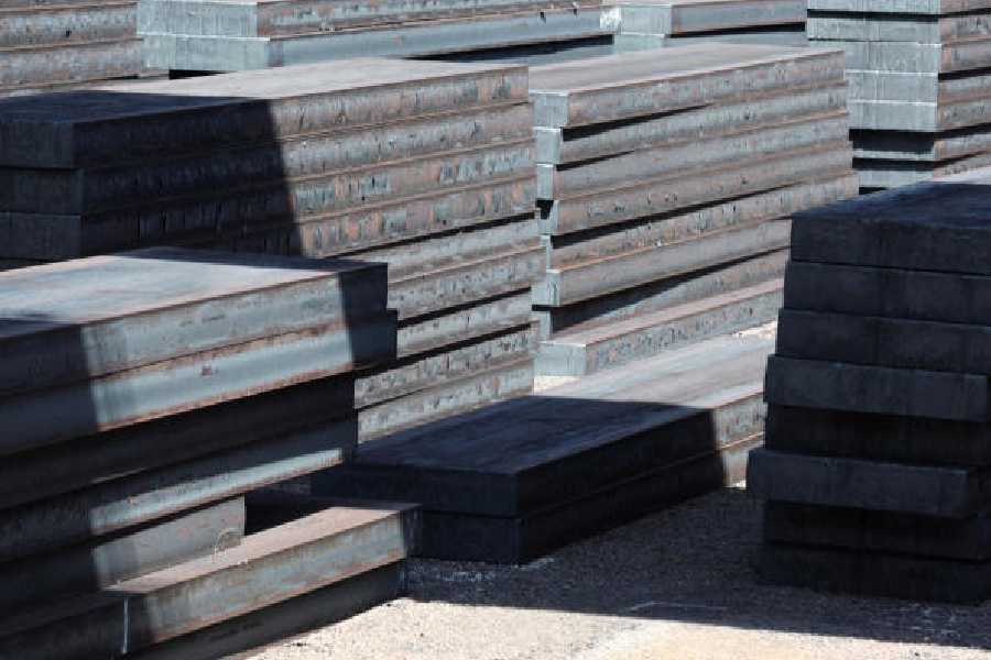 Stacked steel slabs at the steel plant of Thyssenkrupp Steel in Germany. Reuters