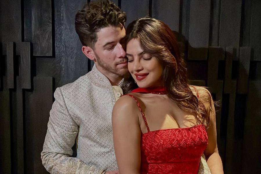 Nick embraced Priyanka for a picture. While he looked dapper in a beige-hued ethnic suit, Priyanka stunned in a red sharara set.