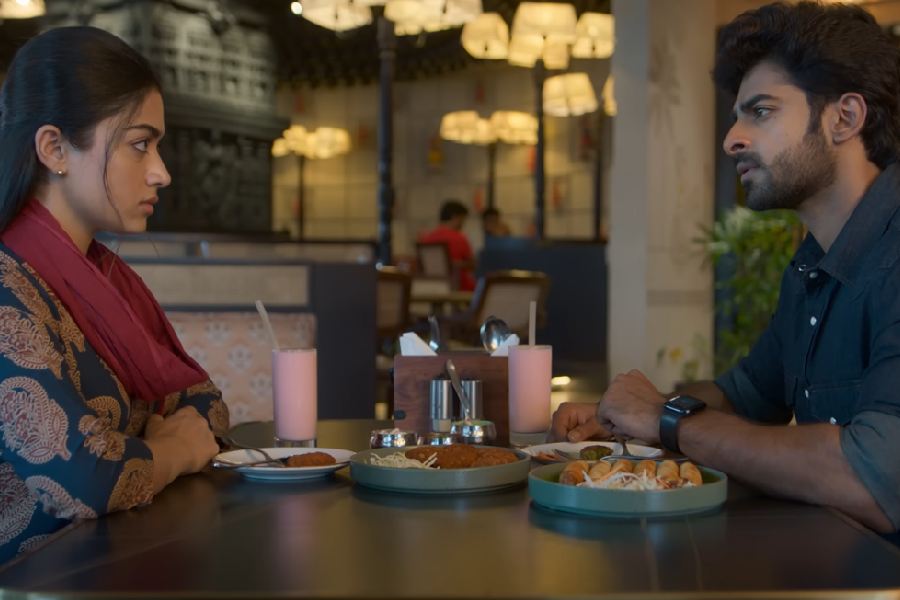 The video shows Mandanna and Shetty’s characters discussing if they are right for each other.