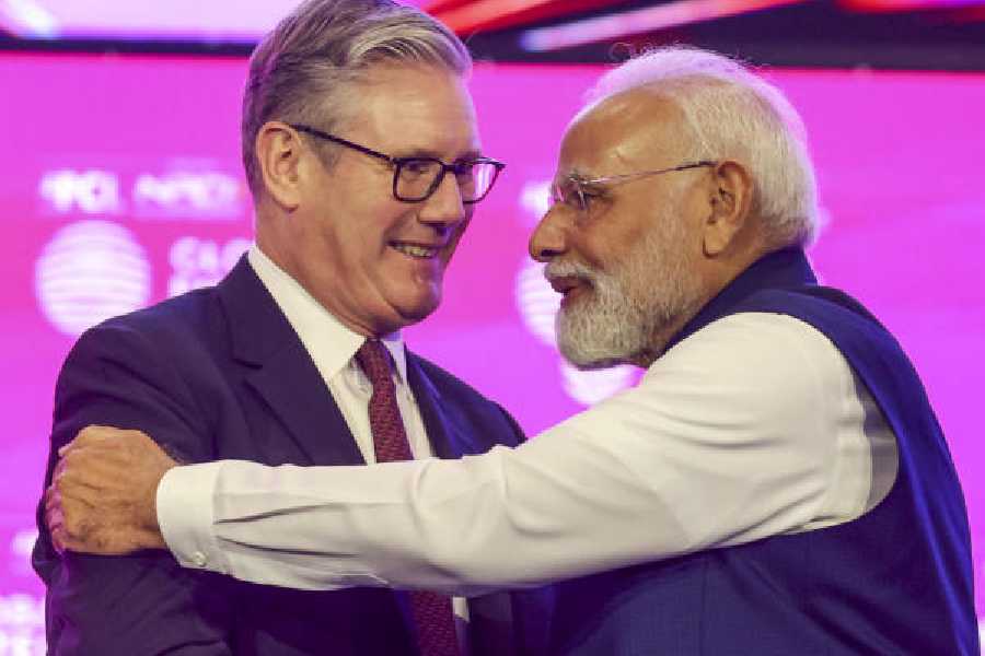Prime Minister Narendra Modi with his British counterpart Keir Starmer in Mumbai on Thursday. PTI