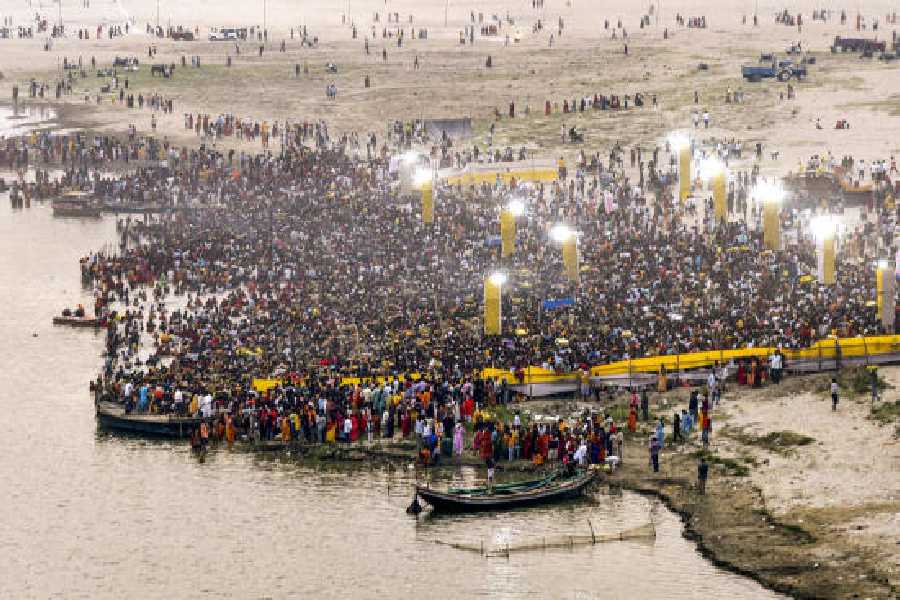 Devotees gather to take the holy dip in the Ganga on the last day of Chaiti Chhath Puja in Patna on April 4. PTI