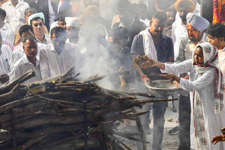 Among those present at the cremation included a few politicians from across parties. Haryana ministers Krishan Lal Panwar and Shyam Singh Rana, Punjab Assembly Speaker Kultar Singh Sandhwa, Congress leader Pawan Kumar Bansal, and Haryana Congress MLAs Ashok Arora, Pooja Chaudhry and Nirmal Singh attended the cremation.