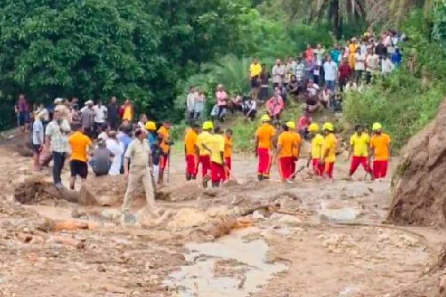 Rescue operation under way at landslide-hit Pekat in Rayagada on Friday. Gopal Krishna Reddy