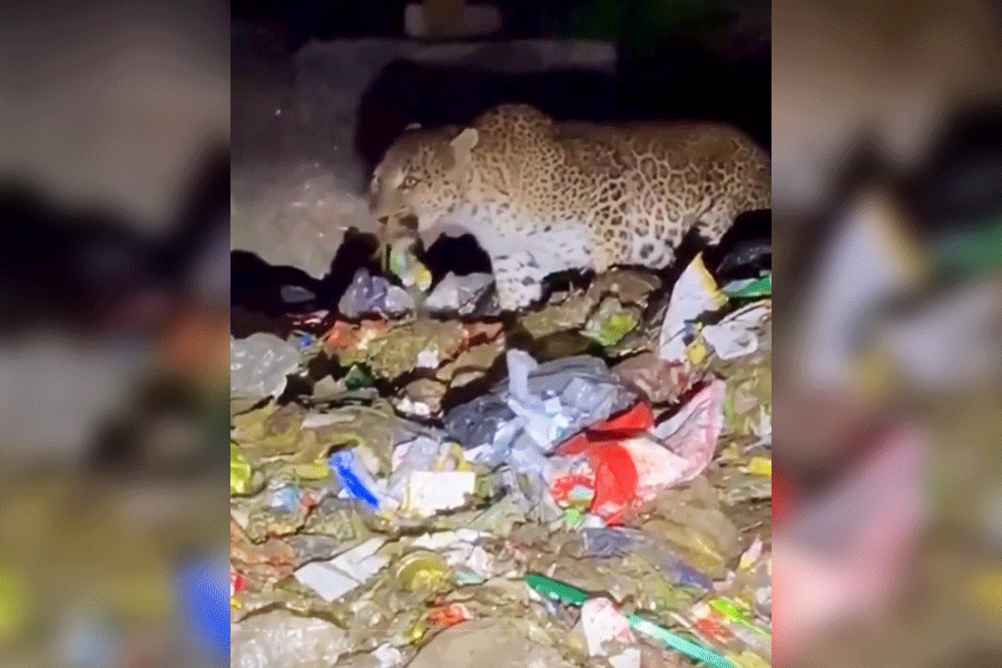 The leopard in the video might have been looking for a meal, but the scene it represents is one of a species losing its place, and a country struggling to manage its waste.