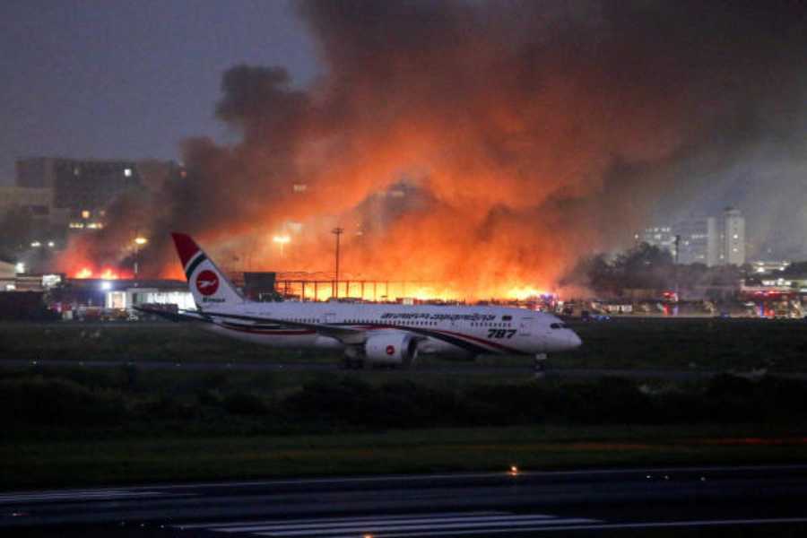 “We received the information at 2.30pm and immediately dispatched our units to join the ones deployed at the airport,” fire service spokesperson Talha Bin Zasim said. Thirty-six firefighting units have been engaged, he added.