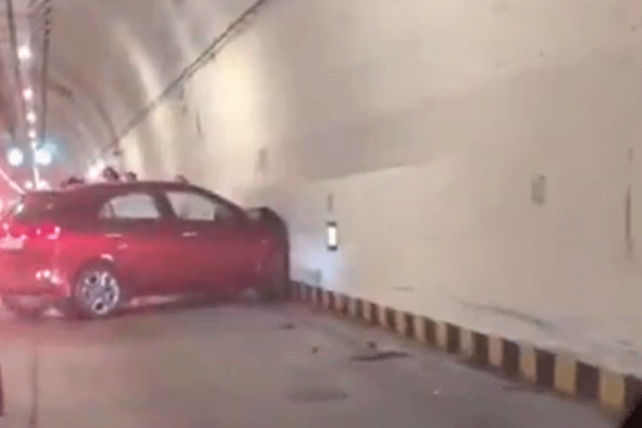 According to the official, the red car crashed into the right wall of the Coastal Road tunnel towards Worli.