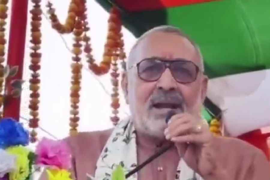 Giriraj Singh at the rally in Bihar’s Arwal district on Saturday Sourced by the Telegraph