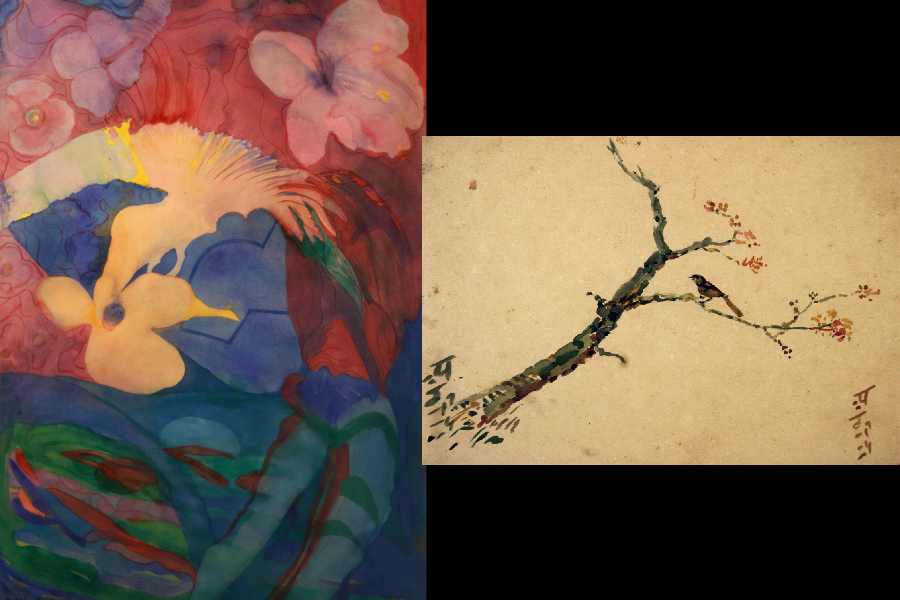 Cosmic Flower by Amal Ghosh (left); An artwork by Ababnindranath Tagore (right) Birla Academy of Art and Culture