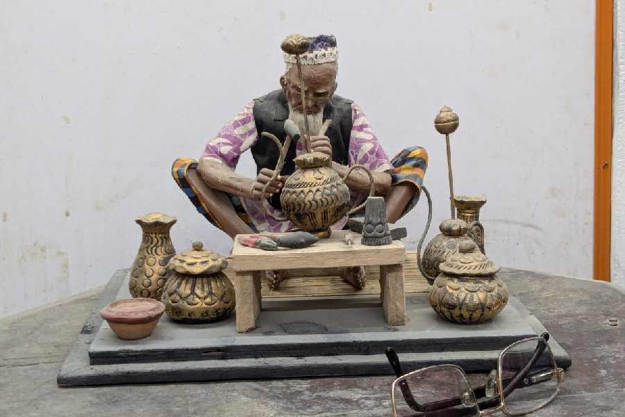 Rakhal was preceded by at least three artisans from Krishnanagar whose works were exhibited abroad all those years ago. Among them were Jadu Nath Pal, his brother Ram Pal and his nephew Bakkeswar Pal. Their works were displayed in exhibitions at Glasgow and Amsterdam. In the latter, life-sized models of different tribes of India attracted thousands of visitors.