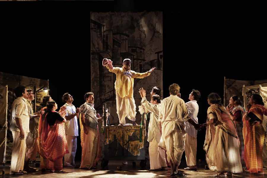 Such plays are rare. Life in refugee settlements, referred to as ‘colony’, has hardly been portrayed in Bengali theatre. Besides underlining the struggle for existence, Majumder trains his eye on the politics of the Left, which found a strong support base in these terrains that also fostered Naxalite elements and, eventually, celebrated the coming of the Left Front to power. The scenes are true to life, and the emotions raw and real.