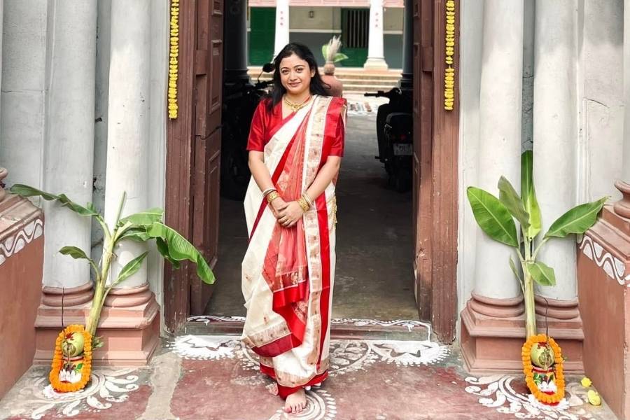 Her house comes alive with the sound of dhaak, ghonta and damama as the family gathers morning and evening to play traditional instruments, watch the arati and partake in bhog. Unlike most Puja enthusiasts, who rush out pandal-hopping, Arpita’s celebrations remain firmly centred at home. “For me, therefore, a Puja plan means reaching the thakurdalan at the time the family priest asks us to, dressed in a new sari, participating in Puja activities, offering anjali, and watching the arati,” she shared.