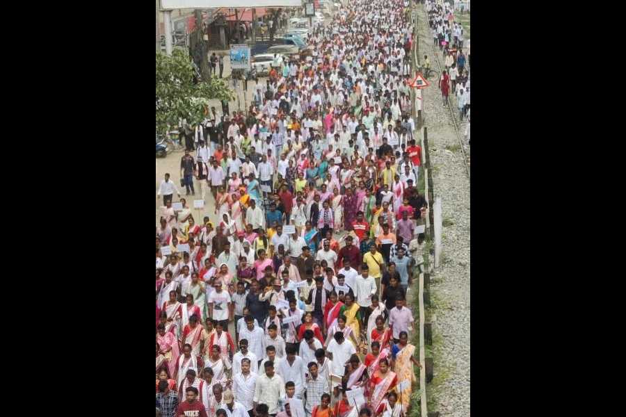 Thousands of tea tribe and Adivasi community members on Wednesday took out a protest rally in Assam’s Tinsukia, demanding Scheduled Tribe (ST) status.
