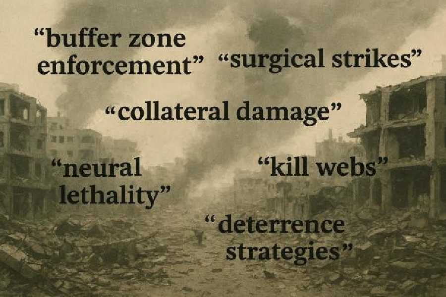 The feminist scholar, Carol Cohn, writing in the wake of the Cold War, identified the bizarre abstraction in the language used by nuclear defence strategists and policymakers — the granular language of “penetration aids” characterised by “collateral damage”, terms that extract the bodily presence and morality from war. In 2025, we are not simply experiencing the echo of Cohn’s observation; we are witnessing its algorithmic transformation. The language of defence today is inscribed in predictive analytics, drone telemetry, biometric sketches, and the models of language themselves. Armies now outsource not only labour, but cognition.