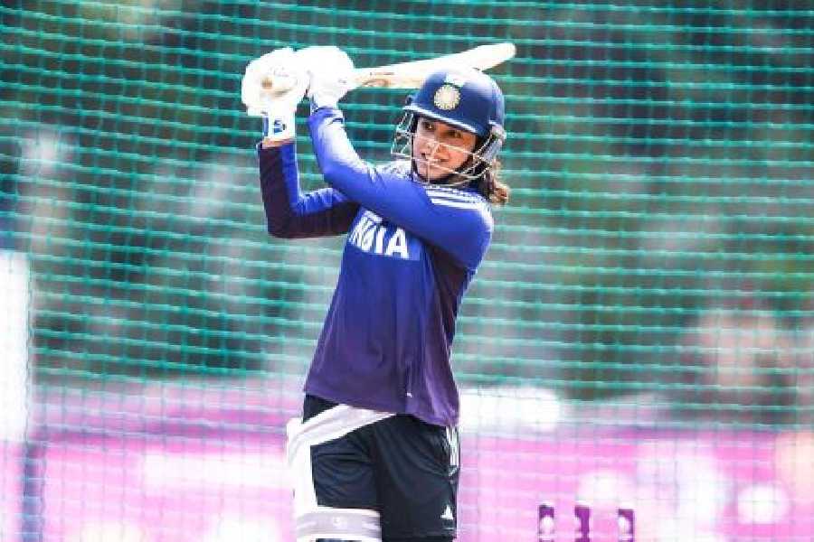 Smriti Mandhana at practice on the eve of the World Cup match against New Zealand. Picture courtesy: BCCI