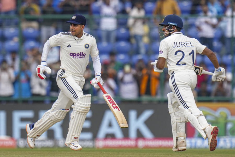 India's captain Shubman Gill, left, and Dhruv Jurel run between the wickets on day two of the second and final Test cricket match of a series between India and West Indies, at the Arun Jaitley Stadium, in New Delhi, Saturday, Oct. 11, 2025. PTI