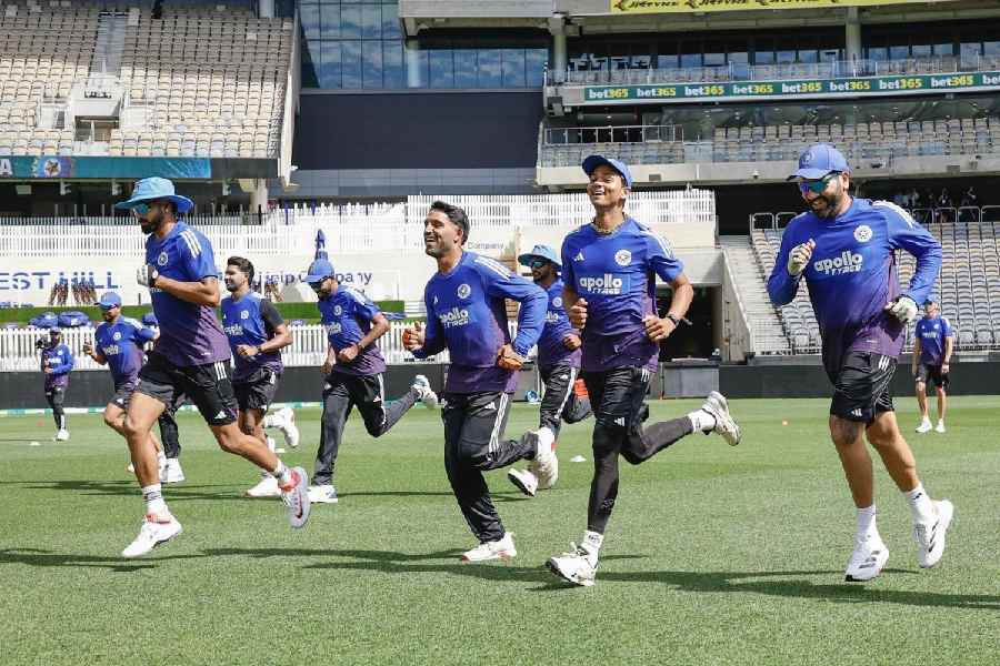 Rohit Sharma (right) at India’s training session with Yashasvi Jaiswal and Dhruv Jurelin Perth, ahead of the ODI series opener on Sunday. Sourced by the Telegraph