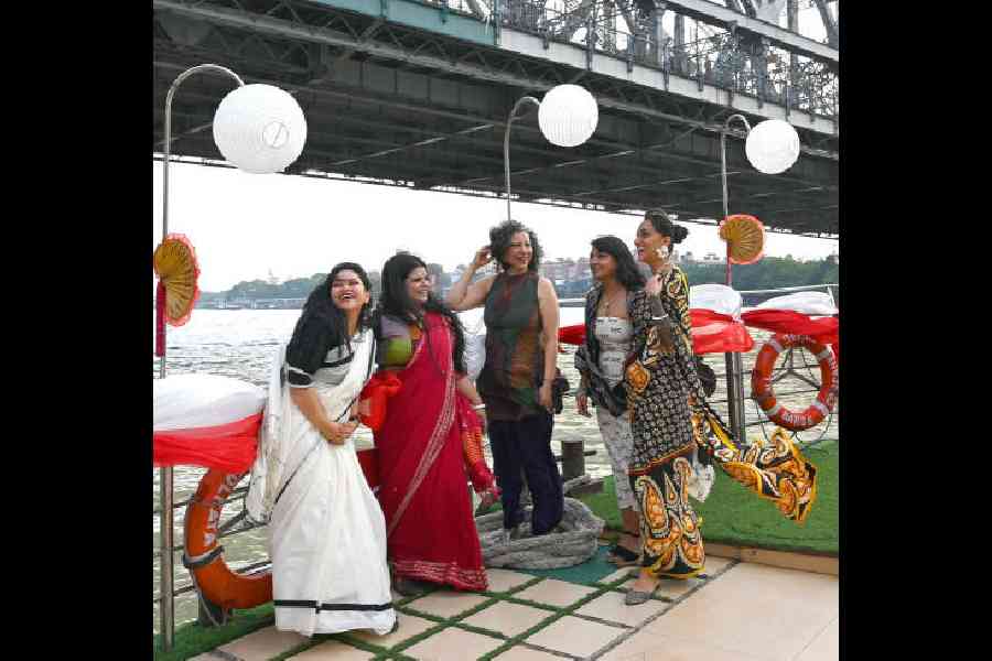 On a sunny morning, Karuna Ezara Parikh, a poet; Shuli Ghosh, co-founder and creative head at Sienna; Parama Ghosh, founder of the eponymous clothing label; and Eina Ahluwalia, founder of conceptual jewellery brand Eina, boarded Desire, which had decked up in the hues of the festive season, for a special photoshoot. Their distinct personalities added layers to the frame. Much like the age-old Howrah Bridge that formed the backdrop, synonymous with Calcutta and its spirit.