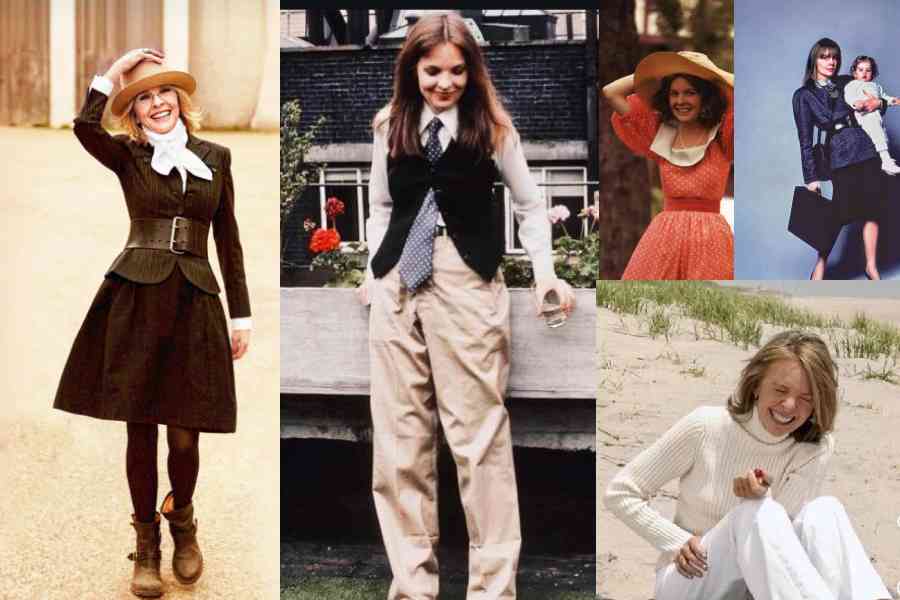 From tailored menswear to coastal chic, Keaton’s looks on screen captured the timeless essence of her vision as a style doyen.