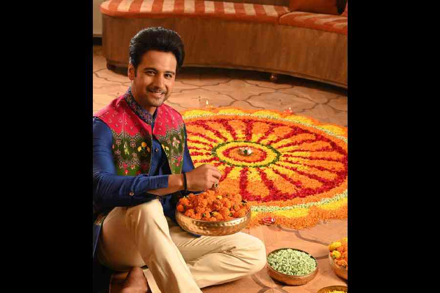 Diwali, the festival of lights, is much more than a celebration. It is one of those Indian festivals that lights up our hearts and binds us with a certain togetherness. From lighting diyas to making intricate rangolis, the aroma of fresh sweets, sparkle of a new dress and bursting crackers — every element of Diwali carries a deep meaning, a tradition that tells a story. Capturing some of these elements, we had actor Yash Daasguptaa turn muse for us for a special Diwali shoot at Rumors, the latest party pad on Chowringhee, that we wrapped up with a hearty chat. Excerpts.