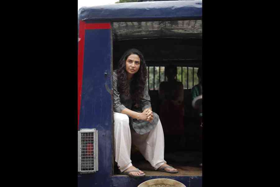 In the announcement video, Subhashree appears in a deep blue kurti paired with a white salwar and maroon stole, her kohl-rimmed eyes and curls adding to her reporter persona. “How is it possible for women to get pregnant in an all-woman jail?” she asks two women constables, before walking through what appears to be the Alipore Jail interiors. The background music is eerie and inquisitive. The clip ends on a chilling note — as she comes face to face with a woman hanging inside a cell. As the woman slowly turns towards her, she realises — with chilling disbelief — that she’s staring at her own reflection.