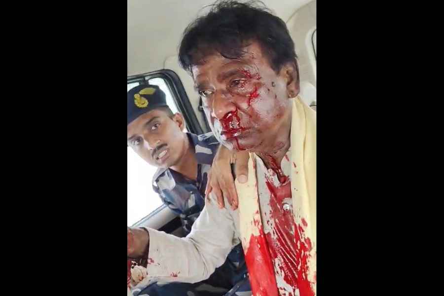 A bloodied Khagen Murmu in Nagrakata on Monday. Picture by Biplab Basak