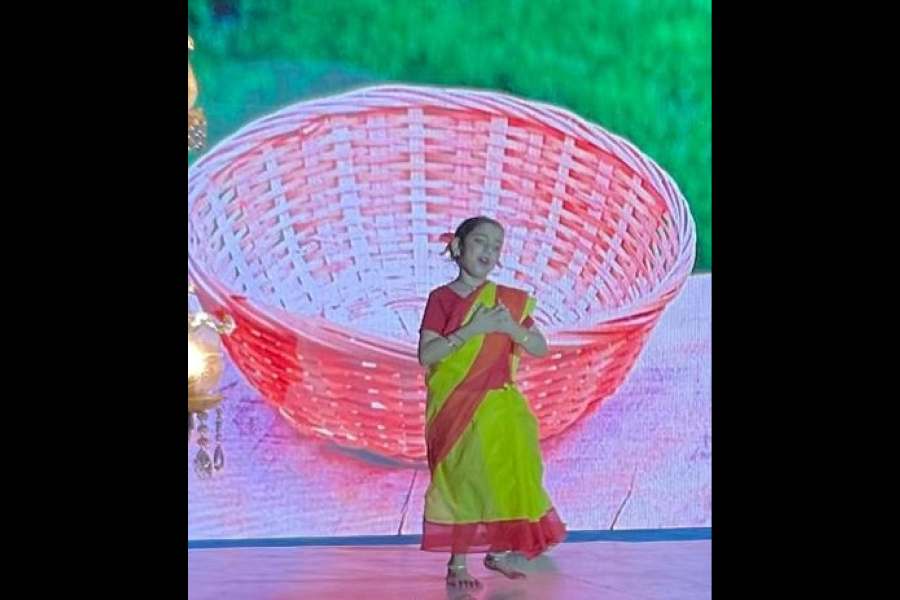 The show recreated memories of childhood pastimes — playing with talpatar sepai (soldiers made of palm leaves), balloon and kite-flying, and floating paper boats after a shower. The song Amader bakultalay bhir jomechhe, accompanied by Raina Guha’s dance, stirred memories of village fairs and the joy of riding the Ferris wheel.