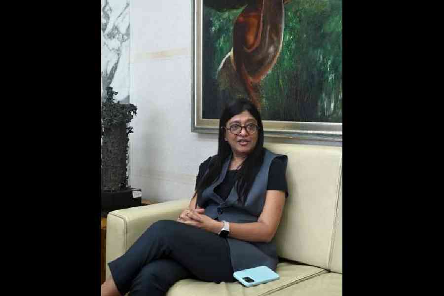 Priti A. Sureka, president of the Merchant Chamber of Commerce and Industry, at Emami Tower off EM Bypass, on Tuesday. Picture by Bishwarup Dutta