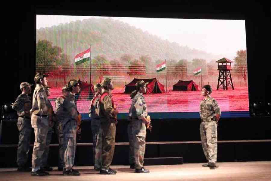 Garuda, a skit on the Indian Army, was staged with powerful action, visuals, and music. The stage turned into a battlefield with gunfire and ended with soldiers carrying the coffin of a martyr in front of his mourning wife and child. “This is our tribute to soldiers, who spend sleepless nights on the borders,” said director Abhishek Ghosh, physics teacher.