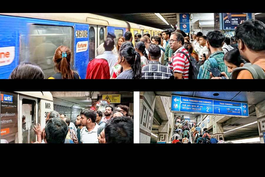 Amit Kumar Burnwal, an insurance agent and one of the stranded commuters, recounted his experience. “I boarded a Dakshineswar-bound train from Shahid Khudiram around 12.20pm. The display showed an arrival time of 12.07pm, but the train was late. It moved slowly, stopping longer than usual at each station. By the time it reached Maidan, it was around 12.45pm — much longer than normal,” he said.