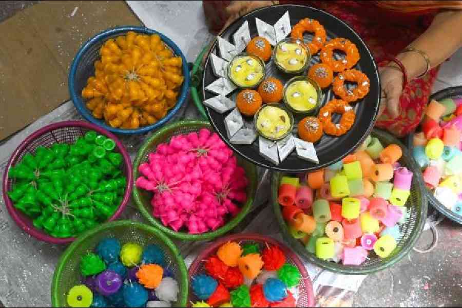 Wax candles shaped like sweets were made at a candle factory in North Calcutta ahead of the Diwali festival. — Picture by Sanat Kr Sinha