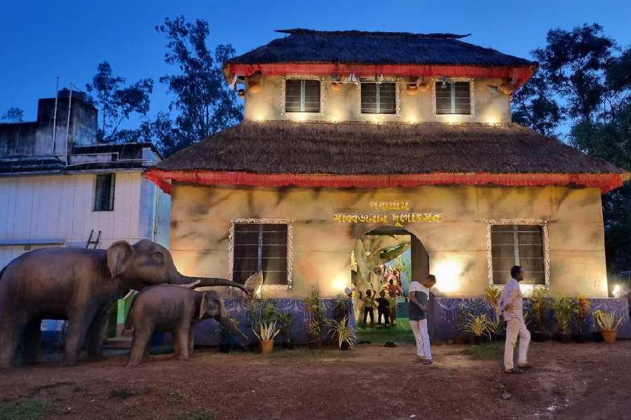 The Panchogram Sarbojanin Durgotsav Committee in Gadro village of Salbani gram panchayat, beside the Jhargram-Lodhasuli state highway, has set up a pandal on the theme “Orao banchuk, amrao banchi” (Let them live, so we may live too).
