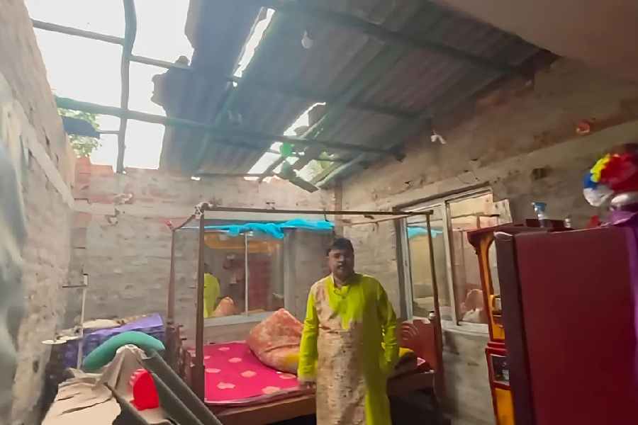 Almost simultaneously with the cyclonic blow in Sandeshkhali, similar storms struck Kalyani in Nadia and Chandannagar in Hooghly on Thursday night. At Kalyani’s Birohi, about a dozen houses were damaged when the storm hit on Thursday evening, destroying banana plantations extensively. “We were still trying to cope with the damage when the sky turned black with rain again,” said a villager.