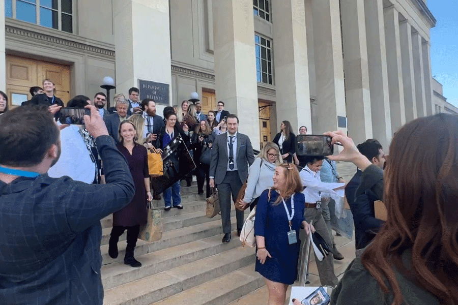 Photographs of the scene showed career Pentagon journalists, some of whom have worked in the building for decades, carrying their personal belongings away.