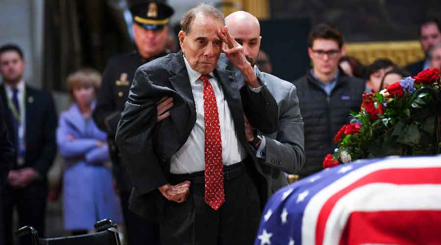 Bob Dole, who overcame grievous World War II combat wounds to become a pre-eminent figure in US politics as a longtime Republican senator from Kansas and his party’s unsuccessful 1996 presidential nominee, died on Sunday. He was 98.
