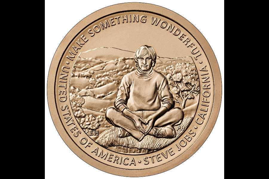 According to the US Mint, the coin will feature Jobs sitting cross-legged in front of a California landscape of oak-covered rolling hills. His posture and expression, captured in a moment of reflection, evoke how this environment inspired his vision to "transform complex technology into something as intuitive and organic as nature itself".