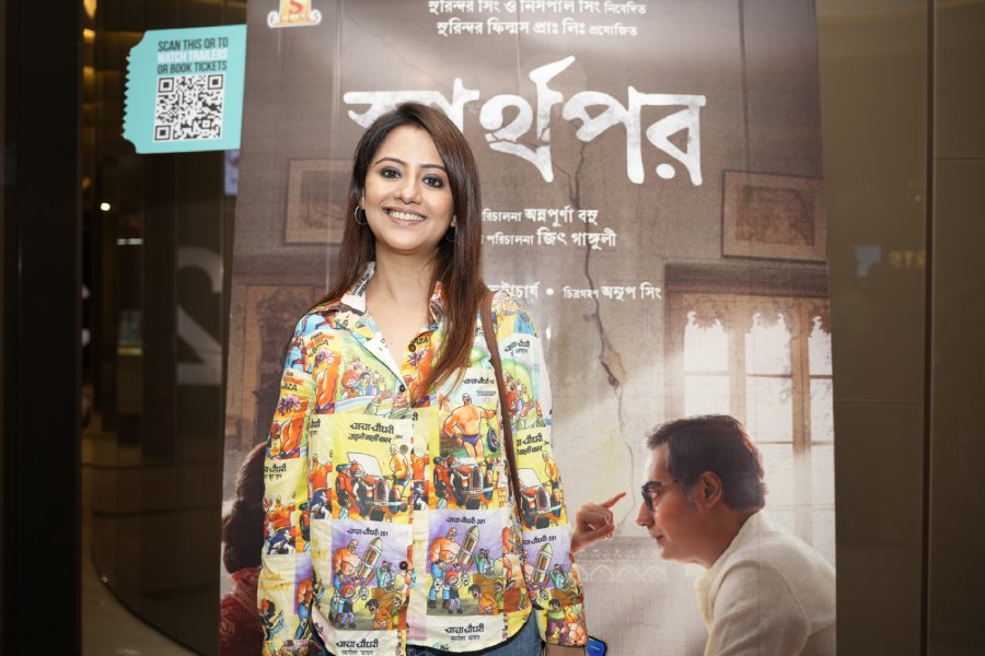 Actor Koushik Sen, who played Koel’s brother in the film, kept it simple in a crisp white shirt paired with denims.