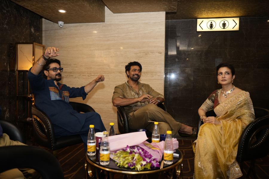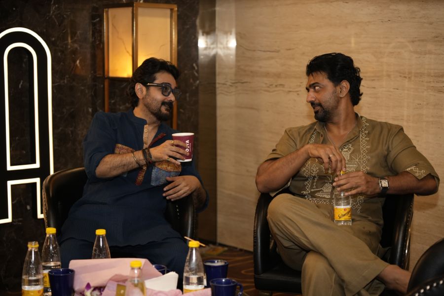 Ranjit Mallick, who also starred in Sharthopor, shared the frame with film actor Chiranjeet.