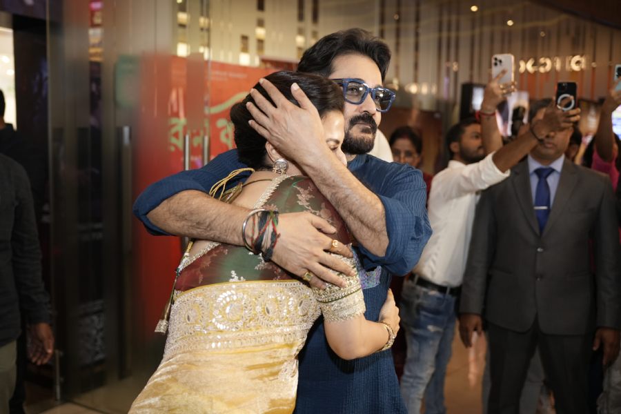 Jeet and Koel, a popular on-screen pair in the early 2000s, reunited at the event. They were all smiles as they posed for the cameras.