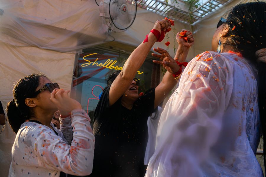 This year, just ahead of Holi, the founders of Shellbeacon Cafe, Ashi and Abhilasha, and the founder of Mitramesh, Vasu, curated a ticketed “Tomatino Sundowner,” inspired by Spain’s La Tomatina but tailored to an urban Indian setting.