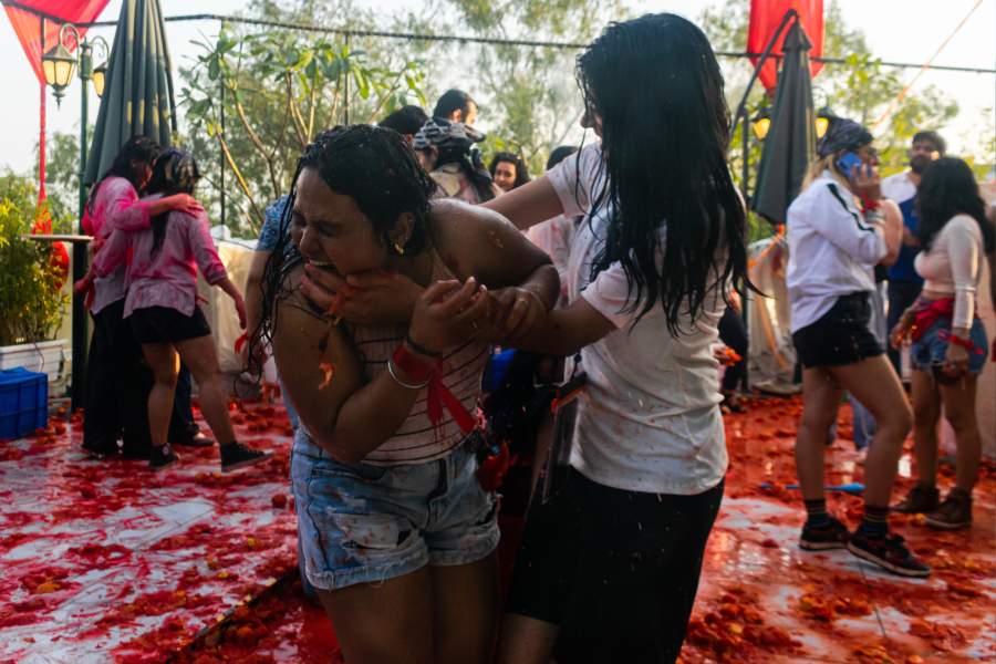 La Tomatina gets a desi twist: Inside Delhi’s curated tomato fight before Holi