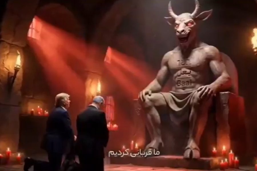 Another AI-generated video targets Trump and Israeli Prime Minister Benjamin Netanyahu over the Jeffrey Epstein files. In the clip, both leaders stand next to a Lego Satan and a folder titled “Jeffrey Epstein File”.